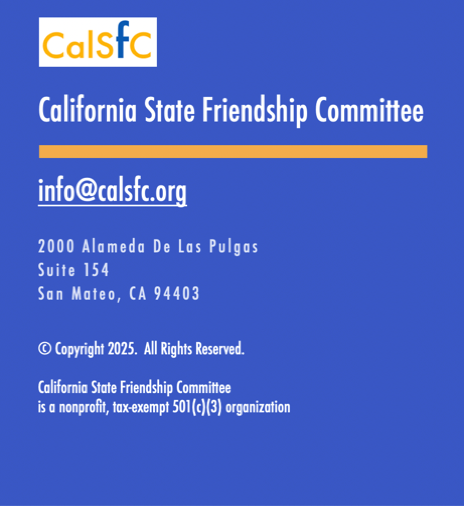 California State Friendship Committee is a non-profit 501(c)3 organization, founded in California in 1999 for the purposes of building global friendship, respect, understanding, and facilitating economic and scientific cooperation to address the world's biggest challenges